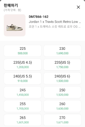 개인적으로 판매 클릭 시 사이즈별 가격 모달을 왜 한번 더 제공해주어야 하는지 의문이다.