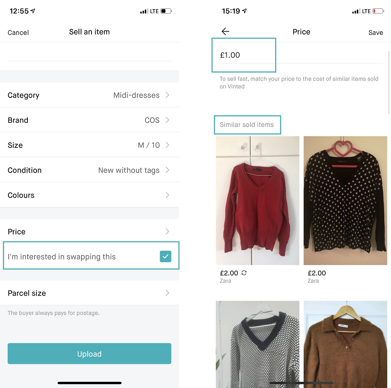 중고 물품 판매시 적절한 가격에 대해 판매 가격 기준 설정에 어려움을 겪지만, 빈티드는 상품 사진 / 브랜드 를 바탕으로 비슷한 상품은 어떤 가격에 판매중인지 보여준다. 판매자는 사전에 가격 측정 조사 같은 별도의 검색이 필요하지 않아, 가격 설정 고민을 해결해준다. 또한 'Swapping', 상대방 의류와 교환 설정 기능도 추가 할 수 있다.