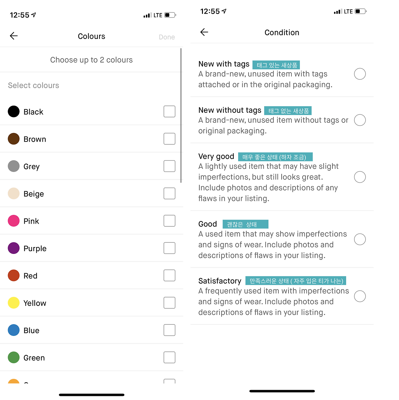 - 중고 상품 판매 특성상 기입해야 되는 특징들이 많지만, Vinted는 대부분 자동화, 클릭 형식으로 긴 내용을 최대한 짧은 시간으로 단축 시켜준다.