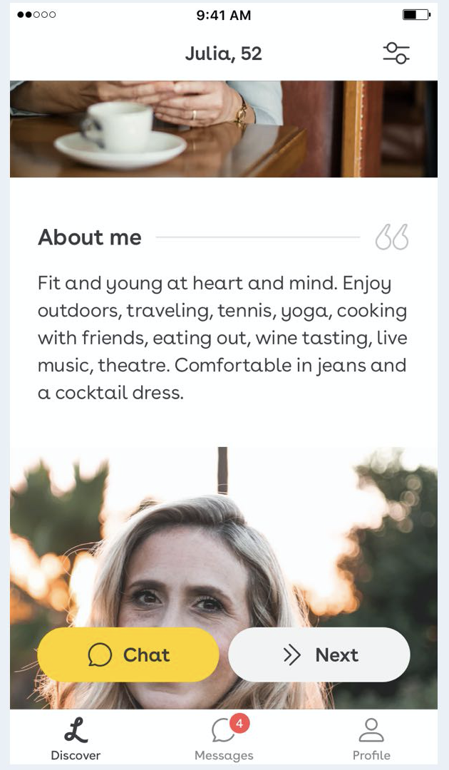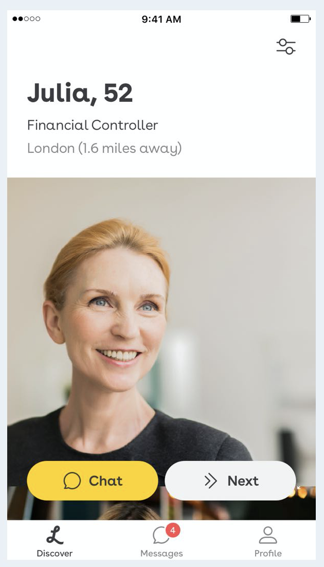 Lumen은 2018년 5월, UK 앱스토어 '오늘의 앱'에 소개되었으며 현재 130만 회원을 보유하고 있는 중년 층을 위한 데이팅 앱이다.