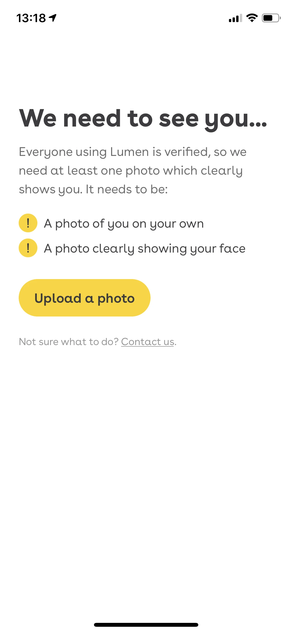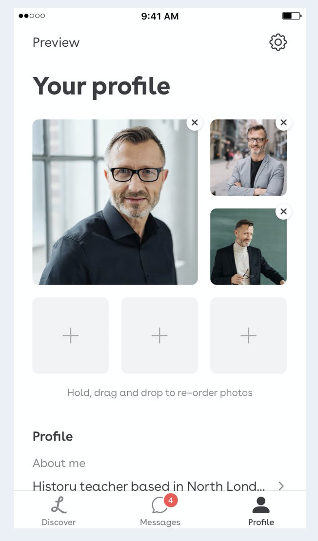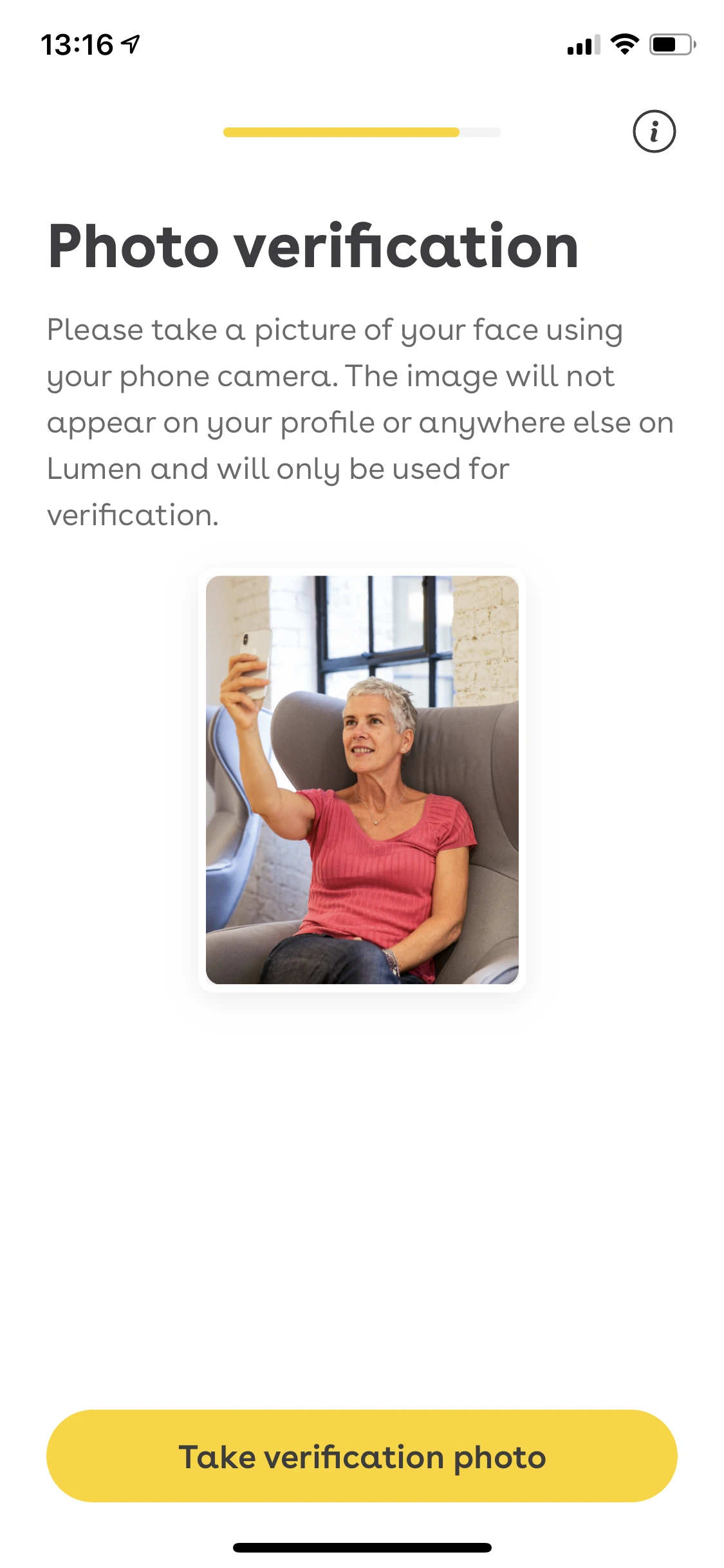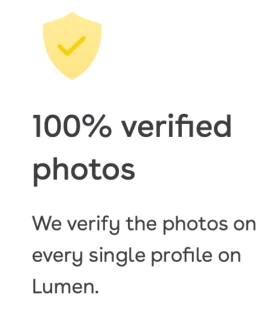 가짜 사진, 각자의 10년 전 리즈 시절을 뽐내는 사진이 난무한 데이팅 앱 시장에서, Lumen은 검증된 사진만을 고집한다. 다른 데이팅 앱과 다르게 간단한 가입 후 프로필 설정, 파트너를 바로 찾을 수 있지 않고 사진 검증 절차가 필요하다. 자신의 얼굴이 보이는 사진 한 장을 업로드 한 이후, 카메라로 바로 셀카를 찍으며 (이때 찍은 셀카는 프로필에 업로드되지 않는다.) 사진과 실제 얼굴이 일치하는지 2차적인 검증이 필요하며 그 후 데이팅 상대를 검색 가능하다. 가짜가 아닌 자신의 나이, 사진이 보증된 사람들만 사용할 수 있다는 점에서 Lumen은 성숙한 데이팅 시장을 구축하고 있다. (더 세분화된 UI를 보고 싶었다만 이 부분 때문에 나는 Lumen 이용자가 될 수 없는 아쉬운 점이있었다.)