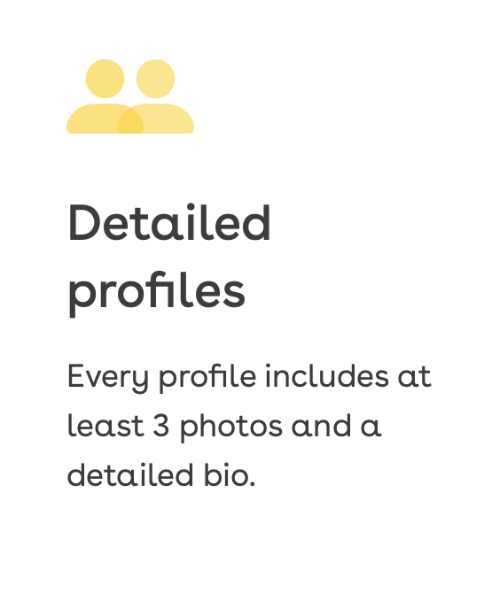 자신의 사진 최소 3장 최대 6장까지 등록 가능하며, 직업, 키, 식습관, 자녀에 대한 정보까지 입력 가능하여 상대방에 대해 사전에 자세하게 알 수있고, 어느정로 신뢰도있는 사람과 매칭에 도움을 준다.