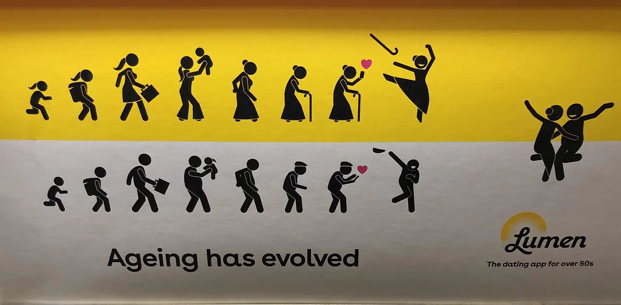 한국과 다르게 인터넷이 없는 영국 지하철(튜브) 안에서 지하철 문보다 자리를 크게 잡은 수많은 광고 판들은 나에겐 넷플릭스 같은 존재였고, 그중 항상 내 이목을 집중시킨 건 광고 50대를 위한 데이팅 앱 'Lumen'이다. 일차적으로 데이팅 앱 광고가 지하철에 크게 있는 것에 놀랬고, 중년층을 위한 데이팅 앱이라니!