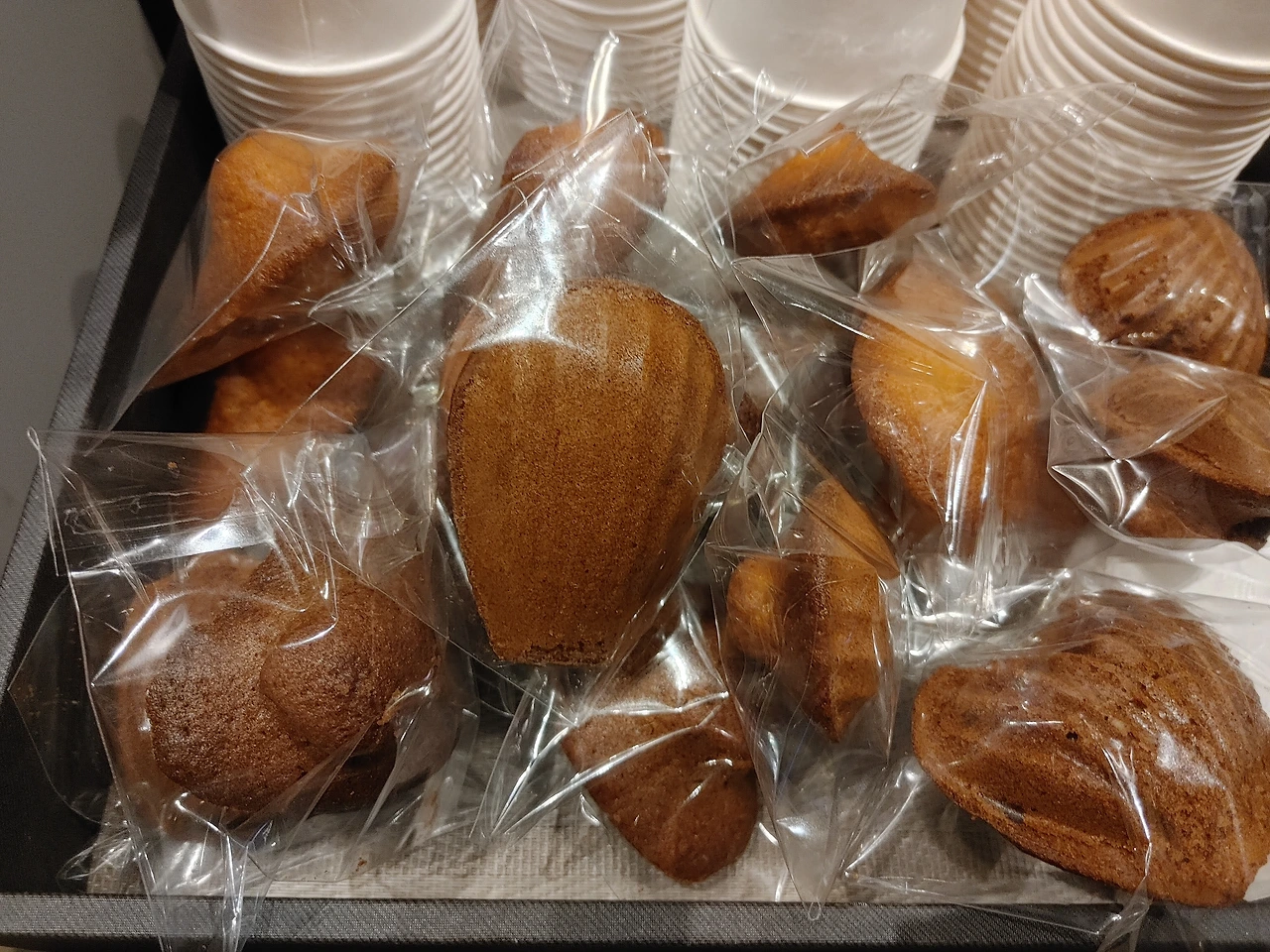 학교에 친구들과 선생님 주려고 마들렌을 밤늦게 까지 굽고 한 땀 한 땀 정성스레 포장한다.