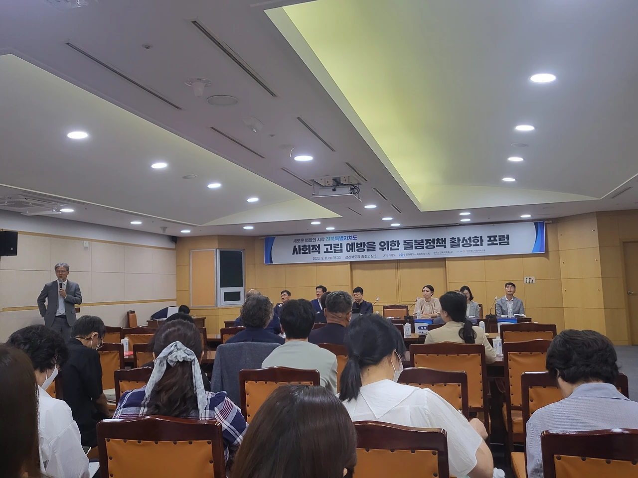 어제 전북도청에서 열리는 '사회적 고립 예방을 위한 돌봄 정책 활성화 포럼'에 다녀왔다. 전라북도사회복지협의회와 한국노인복지학회 그리고 전라북도사회서비스원이 공동으로 주관하는 포럼이었다. 포럼에서 다루어진 내용은 '자기 방임에 대한 이론적 이해와 국내외 사례개입 고찰', '사회적 고립 및 위기가구 유형과 정책제안(전북을 중심으로)'에 대한 주제발표와 종합토론 및 질의응답의 형식으로 이루어졌다.