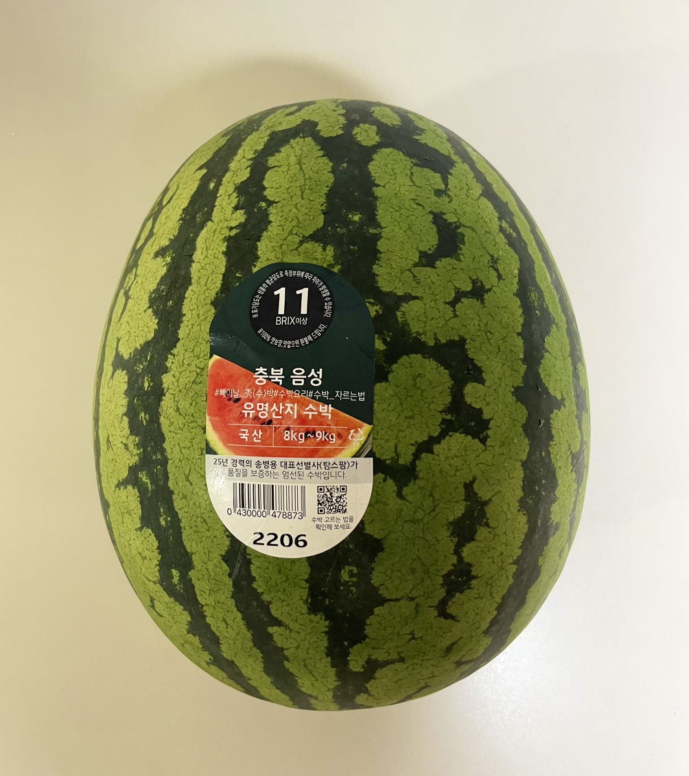 롯데마트에서 샀더니 다른 집안 수박이군요. 그래도 25년 경력의 대표선별사가 엄선한 수박이라고 합니다. 맛있다는 말이겠죠.