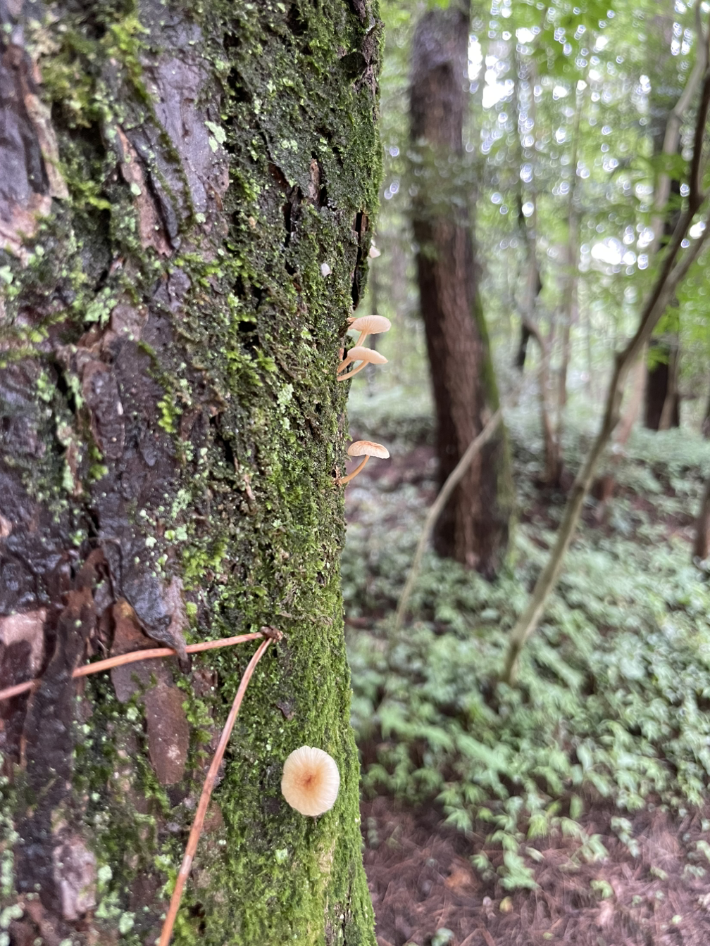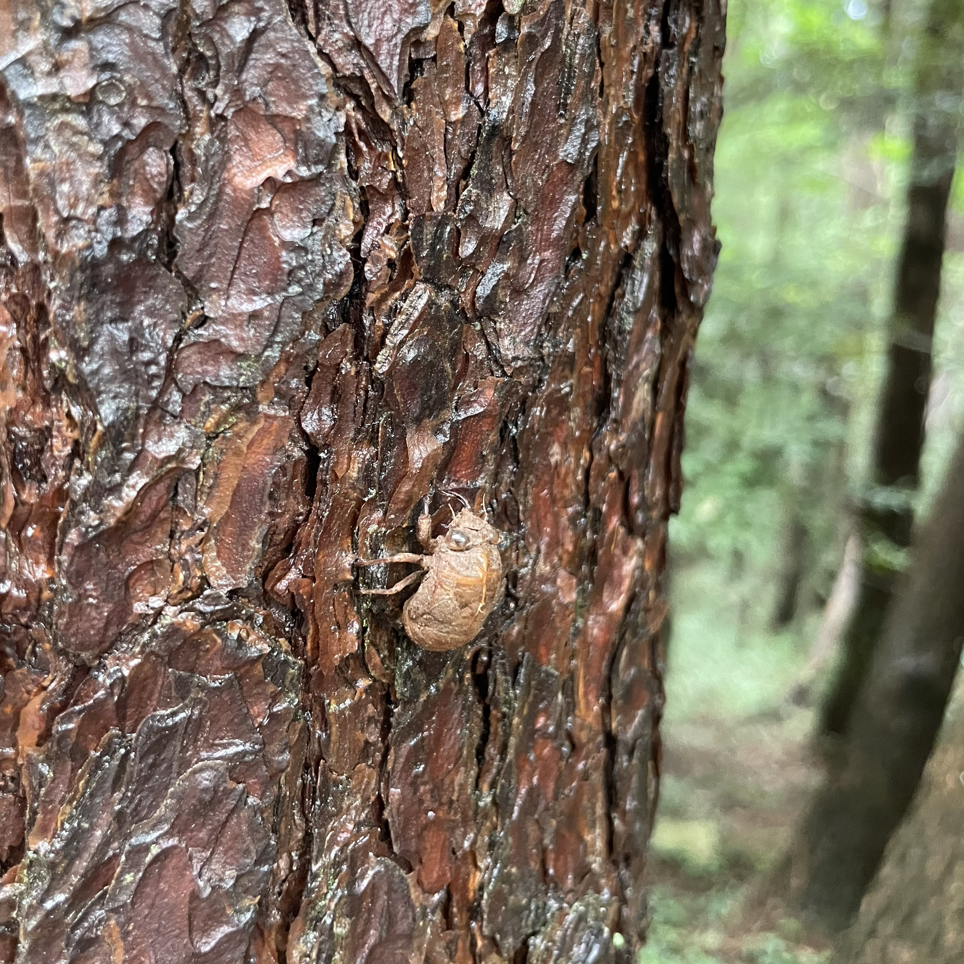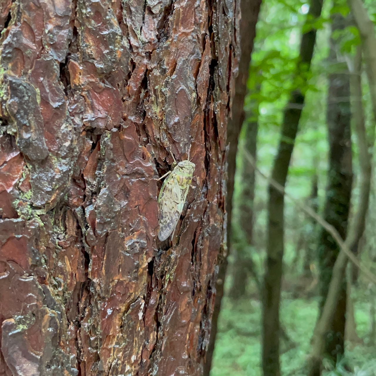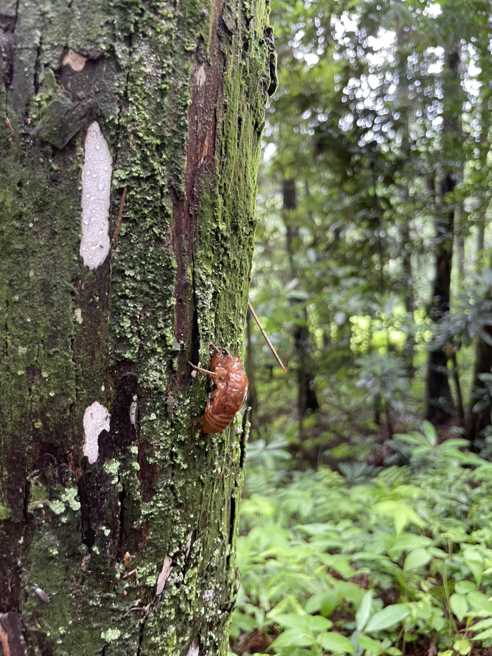 비가 그친 틈을 타 새로운 생을 시작한 곤충도 있었습니다. 도시에 살 때는 커다란 말매미만 보다가 숲 속에서 작은 매미를 보니 참 귀엽습니다. 참매미라고 생각했는데, 글을 쓰며 다시 보니 애매미인가 헷갈리지만 여하튼 작은 매미입니다. 갓 우화한 옥색의 매미는 소나무에 긴 이끼처럼 앉아 있습니다. 우화한 매미가 날개를 말리며 숨을 고르는 자리 한참 아래에는 오늘 새벽까지 살았던 허물이 놓여 있네요. 축축한 나무껍질에 날카로운 다리로 붙어있는 매미의 허물을 만났습니다. 매미는 날개를 잘 말려 인근 나무로 날아간 것 같습니다. 곧 해가 쨍한 날에는 나무 사이사이로 매미의 울음소리가 채워질 것입니다.