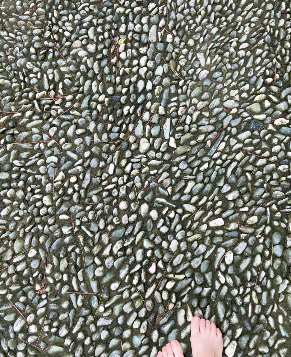 둥근돌, 뾰족한 돌이 콕콕 박힌 맨날 걷기 구간입니다. 지난봄에 걸어본 적이 있었는데 아프지만 걷고 나니 개운한 느낌이 들더라고요. 그래서 오늘도 그 자리에 섰습니다. 아픈 것을 알지만 걷을 결심을 했지요. 지난겨울에 축구를 하다가 빠진 두 엄지발톱도 새로 잘 자랐네요. 아직 끝부분이 더 자라야 하긴 하지만 이만하면 예쁘게 자라고 있는 것 같아요.