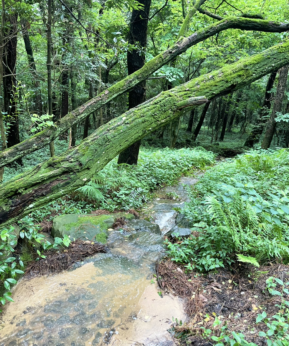 아주 깊은 산속이 아니라 집 가까이에 이런 곳이 있다는 것은 무척 축복이라는 생각이 듭니다. 오후가 되면 멈출 저 흐르는 빗물 소리도, 이끼가 잔뜩 낀 언제 쓰러졌는지 모를 나무의 오랜 시간 그리고 사진에는 담지 못했지만 비가 그친 뒤 바쁘게 흐트러진 자연을 정돈하고 있는 공벌레와 개미의 분주한 움직임까지 지금, 이 순간에만 보고 느낄 수 있는 것입니다. 그래서 천천히 걸으며 마음에 담으려고 합니다.
