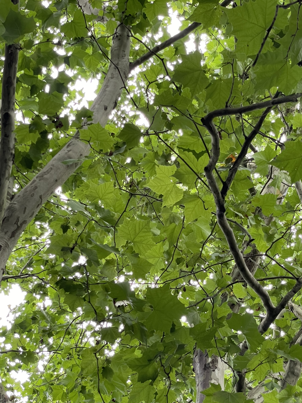 제주도 외 지역에서 데려온 나무들이 자라는 '도외수종원'을 지났습니다. 가장 눈길을 끌었던 것은 플라타너스 나무입니다. 얼마 전 브런치의 이웃 작가님이신 유미래 작가님의 글에서 플라타너스 꽃을 본 적이 있어요. 그래서 더 유심히 플라타너스 나무를 올려다보았습니다. 플라타너스에는 두 가지 추억이 있습니다. 하나는 가로수인 플라타너스 탓에 봄과 가을이 되면 알레르기로 고생을 했지만 부채처럼 생긴 커다란 잎과 줄기의 밀리터리 얼룩무늬를 멋있다고 생각하며 길을 걸었던 기억입니다. 또 하나의 추억은 아이들이 세 살, 일곱 살 때의 일인데 앞산에서 이 잎을 모아 엮어 왕관을 만들어 썼던 기억이 나네요.