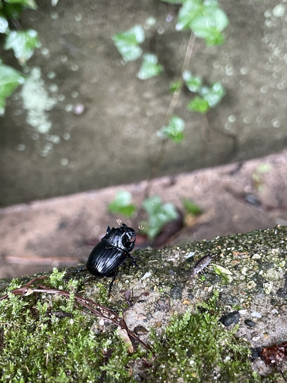 애기뿔소똥구리도 만났습니다. 움직임이 무척 둔해진 것을 보고 문제가 생겼다고 생각했는데 역시나 작은 개미들에게 포위된 것 같습니다. 개미를 털어주었지만 변화는 없었지요. 슈퍼맨 옷을 입고 동네를 날아(?) 다니던 우리 집 막내의 세 살 때 모습이 생각나는 귀여운 아기뿔소똥구리인데 안타깝습니다. 밤 사이 내린 비가 애기뿔소똥구리의 생을 단축시킨 것 같습니다. 곧 자연으로 돌아갈 것 같아요.