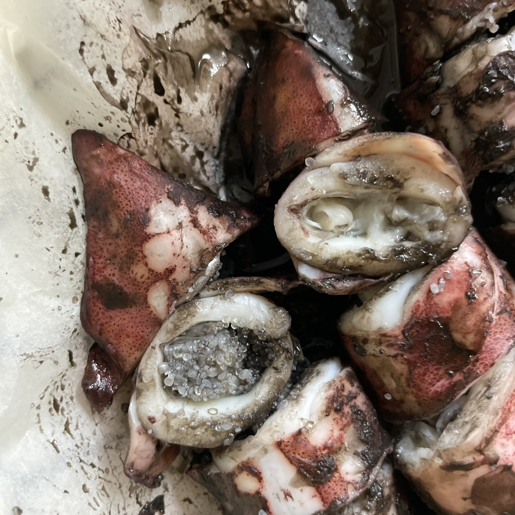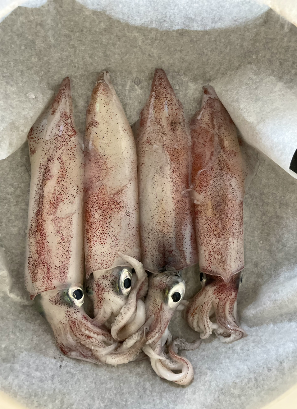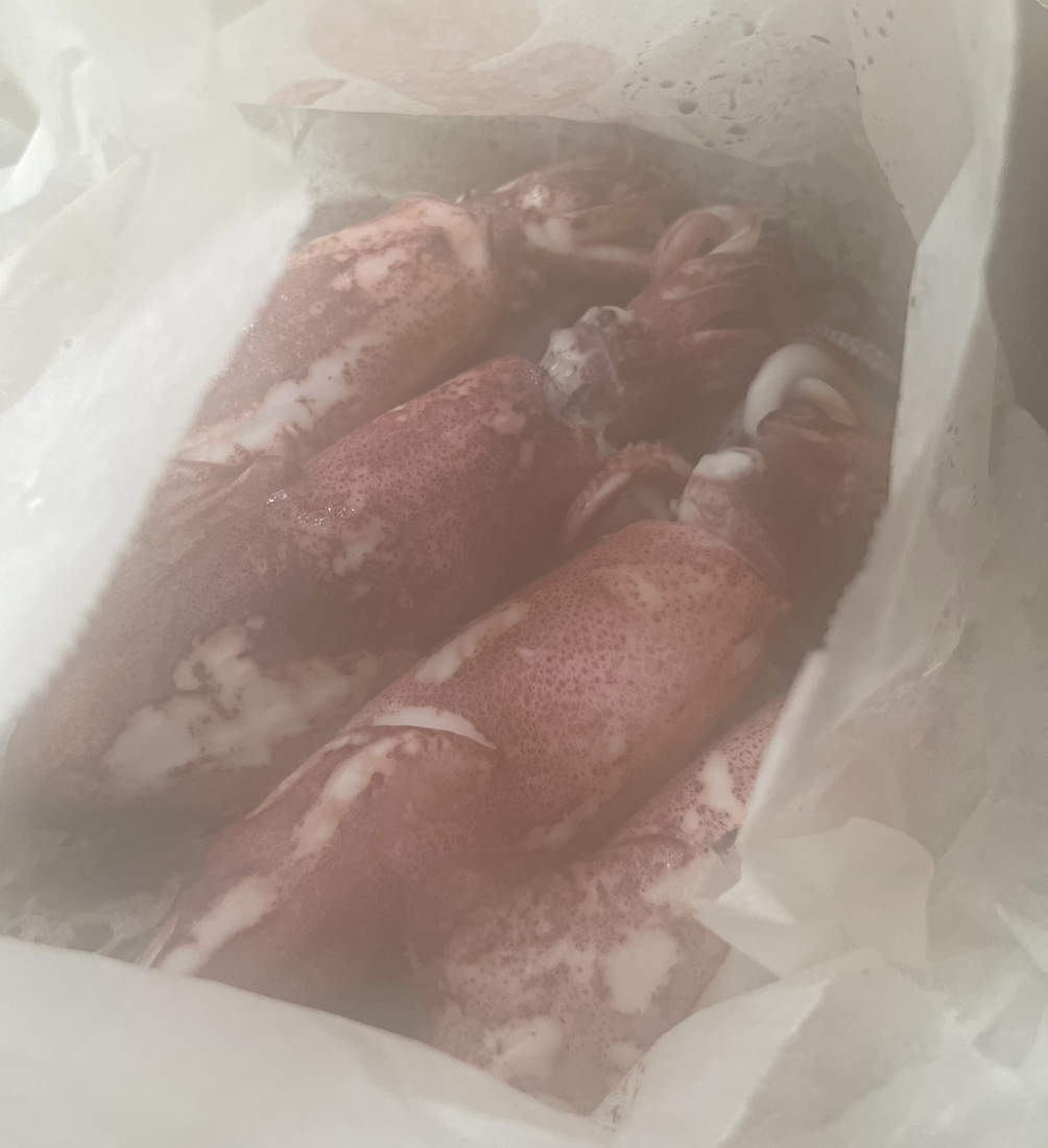 한치는 이렇게 생겼습니다. 제일 작은 것으로 골라와서 몸통 길이가 제 손바닥보다도 짧습니다. 다리는 긴 다리 2개를 빼고는 짧아 오징어보다는 먹을 게 없습니다. 하지만 몸통이 부드럽고 연해서 아이들도 좋아합니다. 지금도 미식가인 둘째는 오징어만 먹다가 갑오징어 볶음을 먹고는 이렇게 맛있는 오징어가 있다니, 하고 감탄을 하더니 한치를 맛본 뒤로는 한치만 먹습니다.