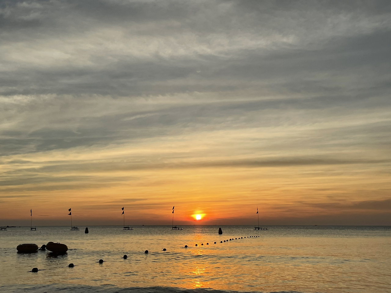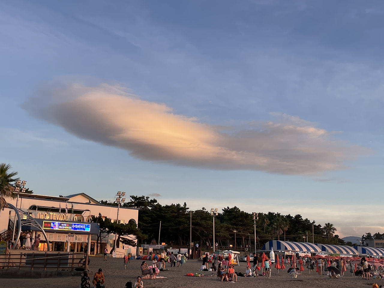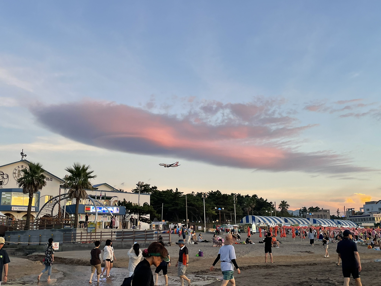 파도 소리, 사람들의 웃음소리, 비행기 소리까지 모두 아름다운 어제의 일몰이었습니다.