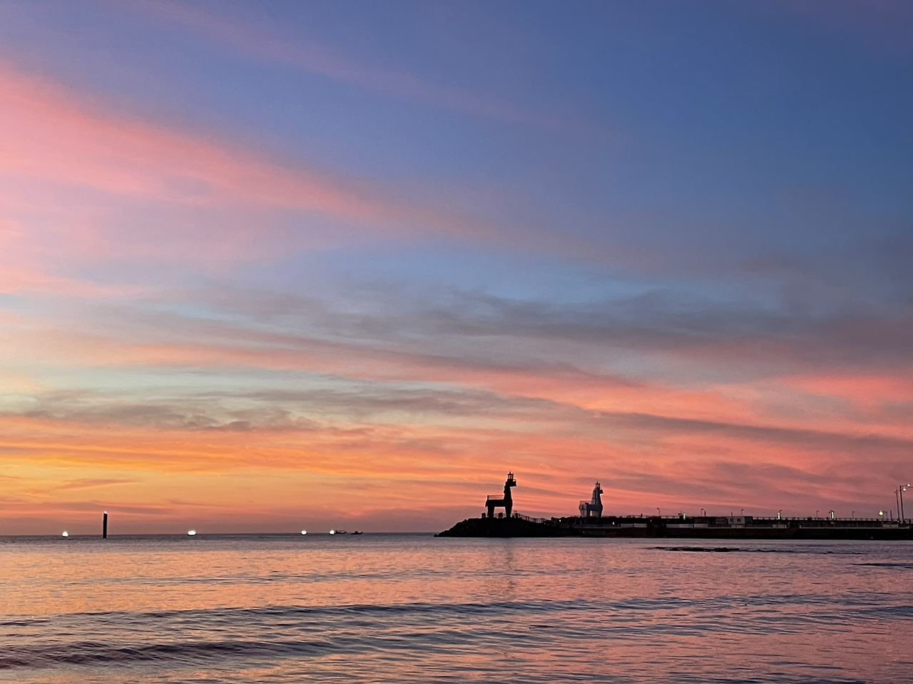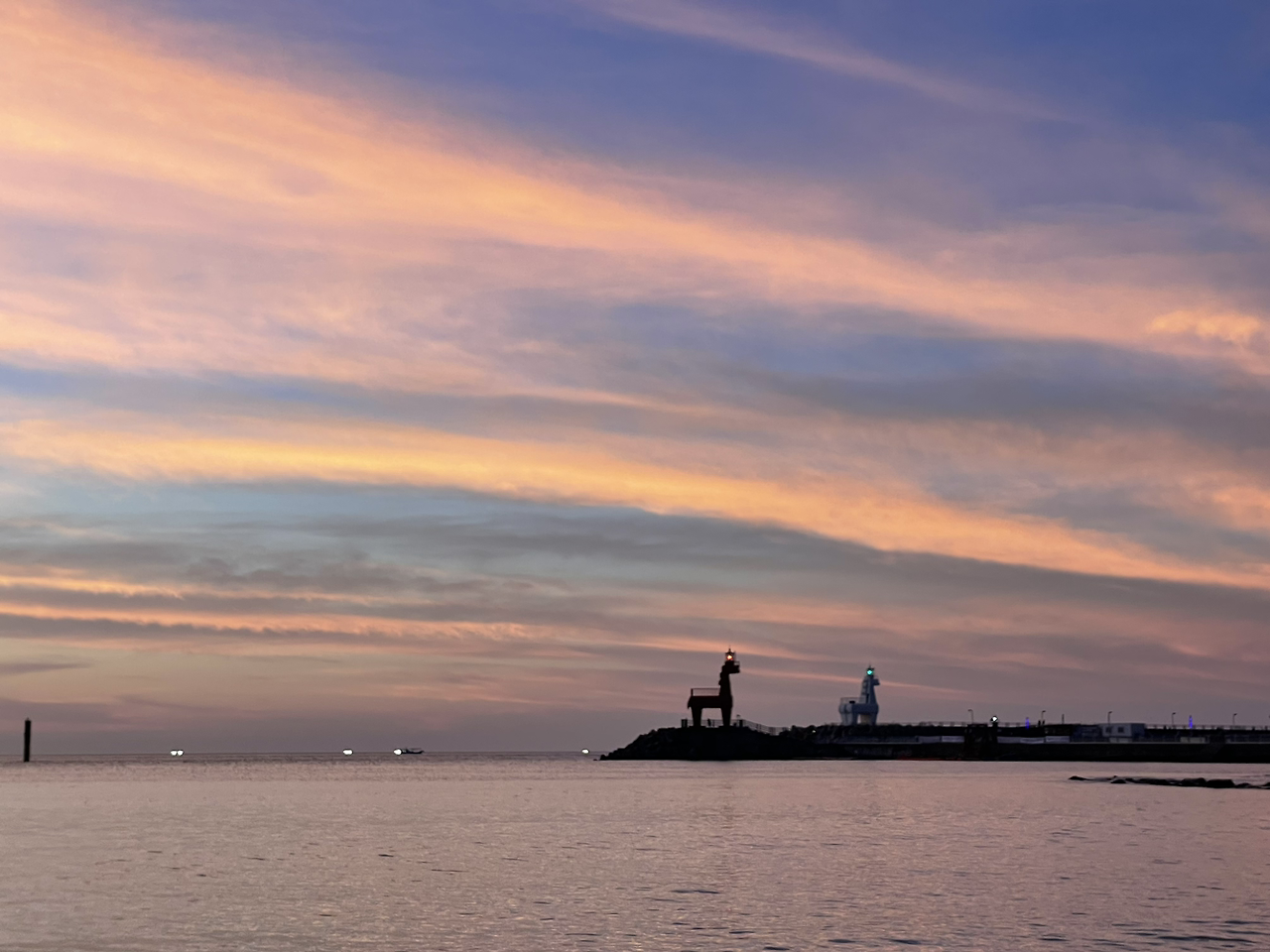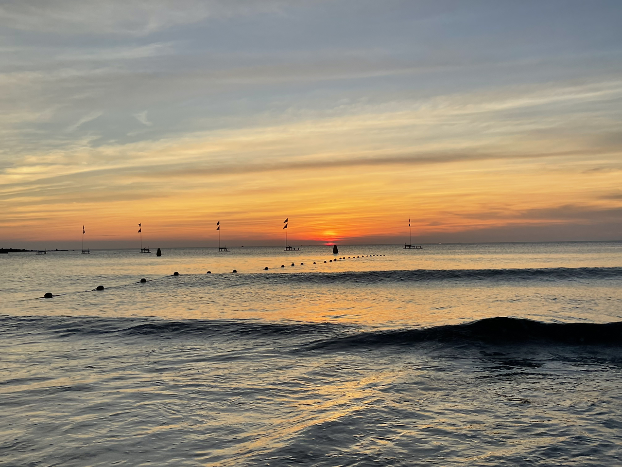 파도 소리, 사람들의 웃음소리, 비행기 소리까지 모두 아름다운 어제의 일몰이었습니다.
