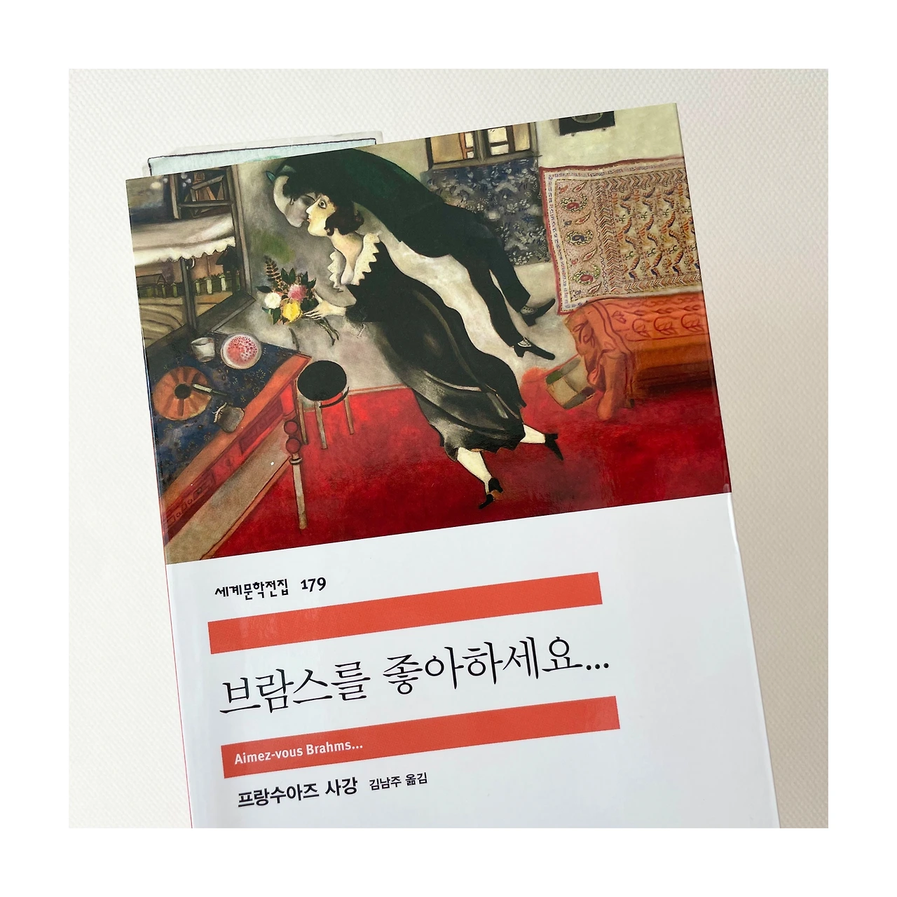 ※ 제가 읽은 도서는 민음사 세계문학전집 <브람스를 좋아하세요...>입니다. 2023년 5월 10일에 펴낸 64쇄 본인데, 같은 책이라도 인쇄 시기에 따라 페이지 차이가 조금씩 있더라고요. 그래서 인쇄 날짜를 함께 밝혀 드립니다. 책 표지는 마르크 샤갈의 <생일>입니다. 왜 이 책의 표지로 이 그림을 골랐는지 아직은 풀리지 않은 수수께끼로 남아 있습니다. 이 부분도 어느 날 우연히, 선물처럼 알게 되는 날이 오겠지요?