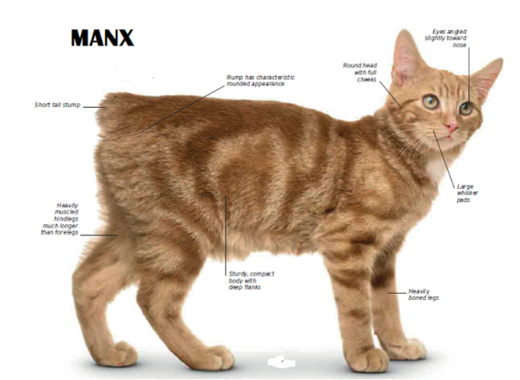 꼬리가 없는 고양이 '맹크스'의 원산지는 영국 북잉글랜드 아이리시해의 맨 섬으로 추정하지만 확실하지는 않습니다. 이들은 둥근 엉덩이를 흔들며 토끼처럼 뛰는 듯한 독특한 걸음걸이를 가졌는데, 이 때문에 성경에 등장하는 대홍수가 시작될 때 노아가 닫던 방주의 문에 꼬리가 끼어 잘렸다던가, 고양이와 토끼의 후손이라는 신화적 해석이 전해 내려옵니다.