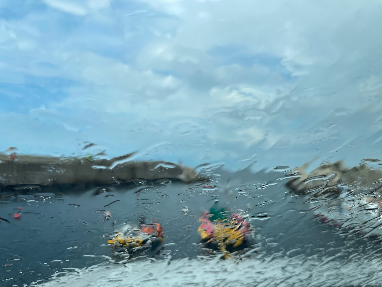 비가 마구 쏟아지다 금세 쨍하고 해가 비추는 오늘 날씨는 아무래도 요즘 제 마음 같습니다. 하와이안 피자를 포장해서 외도동에 있는 알작지 해변으로 갔어요. 그곳에서 캠핑 의자에 앉아 바다를 보며 달콤한 파인애플 과육이 씹히는 피자 한 조각을 먹으며 바다 구경을 할 생각이었거든요. 주차를 하는 순간 빗방울이 하나둘씩 유리창에 떨어집니다. 왜 하필 지금!이라고 생각할 수도 있지만 눈앞에 보이는 모든 풍경이 좋아 그런 생각이 들 틈도 없었어요. 옆으로 내리는 빗물에 유화 한 편을 보는 것 같았거든요.