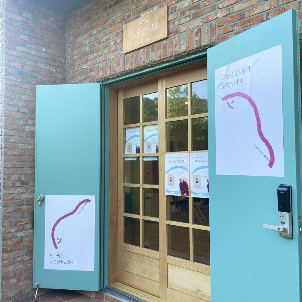 숲 속에 온 것 같은 위치와 풍경도 좋지만 무엇보다 책방 대표님의 도서 큐레이팅과 단정한 공간이 마음을 맑게 만들어서 참 좋았습니다. 와산에 있는 누운 산 책방입니다.