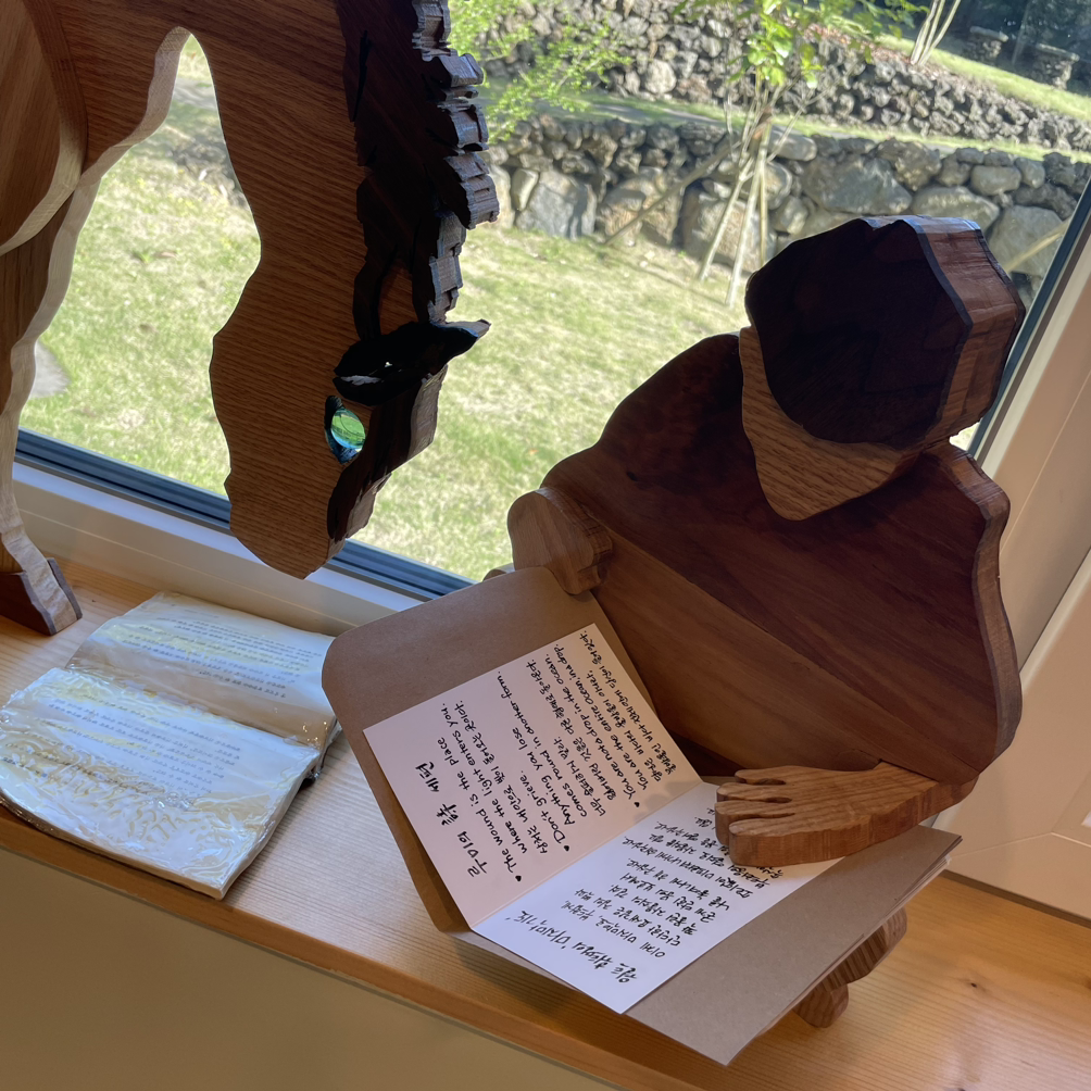 제주에 사는 사람이라면 깊이 공감할 만한 사실. 그것은 제주 사람들은 대체로 주행 시간이 20분이 넘는 거리는 무척 멀다고 생각합니다. 물론 저도 그렇게 생각합니다. 처음 제주에 왔을 때는 하루가 멀다 하고 동에 번쩍, 서에 번쩍 쏘다녔지만 이제는 '우리' 동네만 다닙니다. 이제는 20분 거리에 있는 애월도 꼭 가고 싶은 밥집이 있다거나 볼 일이 있어야만 가게 됩니다. 그렇게 다니던 서귀포는 한라산을 넘어가야 하거나 둘러 가야 하는 낯선 여행지입니다. 그러던 제가 오늘은 장거리를 뛰는 날입니다. 왜냐하면 박완서 작가를 좋아하는 이웃 언니에게 박완서 작가님의 코너가 있는 책방을 소개해 줄 계획이거든요. 언니가 와산의 어느 초록 숲 속에 위치한 책방에서 산새 소리를 들으며 최애의 책을 고르는 장면이라니! 상상만 해도 힐링이 됩니다. 4월부터 기다린 이 장면을 드디어 언니에게 선물하는 날입니다.