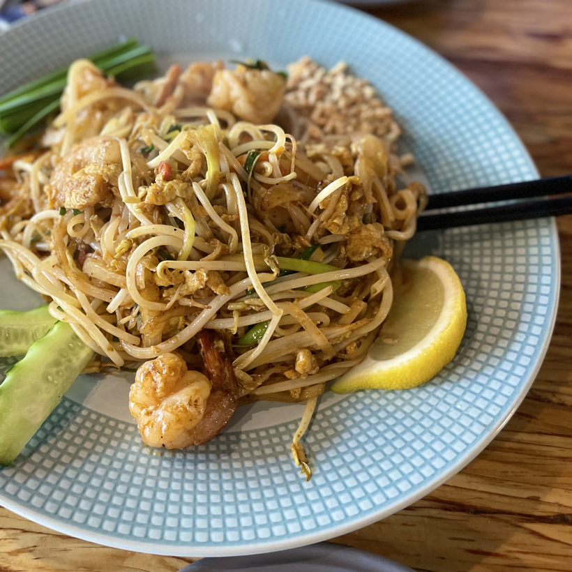 우리의 첫 번째 목적지는 식당입니다. 대흘초등학교 앞에는 '이효리, 아이유가 방문한' 타이 음식점인 '타무라'가 있습니다. 우리는 그곳에서 배를 볼록하게 채우고 다음 목적지로 갈 예정입니다. 오랜만에 어른 사람과 함께 제주 동쪽으로 나들이를 나오니 그저 신나고 즐거운 기분이 듭니다. 날씨가 흐렸지만 화창한 봄기운에 취한 듯 달려니 어느새 목적지에 도착했습니다. 식당의 오픈 시간인 11시에 맞춰 도착했더니 기다리지 않고 바로 식사 주문을 할 수 있었습니다. 오랜만에 맡은 향신료의 향은 일상 속에서 기분 좋은 환기가 됩니다. 다 맛있어 보이는 메뉴 중 팟타이와 튀긴 월계수 잎이 올라간 타이 치킨을 시켰습니다.