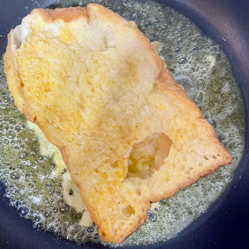 이제 내가 엄마가 되었다. 그리고 엄마가 채워주신 어제의 경험을 바탕으로 나의 프렌치토스트 레시피는 진화를 했다. 처음에는 계란물에 우유를 조금 넣고 바삭하게 구워 먹었다. 그러나 촉촉한 맛이 없고 식으면 질겨 몇 번의 레시피를 수정했다. 그러다 마침내 나의 연구가 마침표를 찍었다. 사춘기인 아이가 엄지를 세우고 웃어준 덕에 우리 집 프렌치토스트 레시피 종결판이 완성된 것이다.