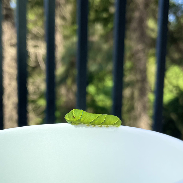 우리는 4번의 허물을 벗잖아. 간혹 자신의 허물을 먹어치우지 않아 반려 인간을 놀라게 하는 애벌레들이 있다더라고요. 허물을 벗은 뒤에는 꼭 자신의 허물을 냠냠 먹어 스스로 치우는 거야. 만약 버려진 허물을 보고 인간이 깜짝 놀란다면, 이것은 동거 인간에 대한 예의가 아니잖아. 우리는 예의를 갖춘 애벌레가 되자고.