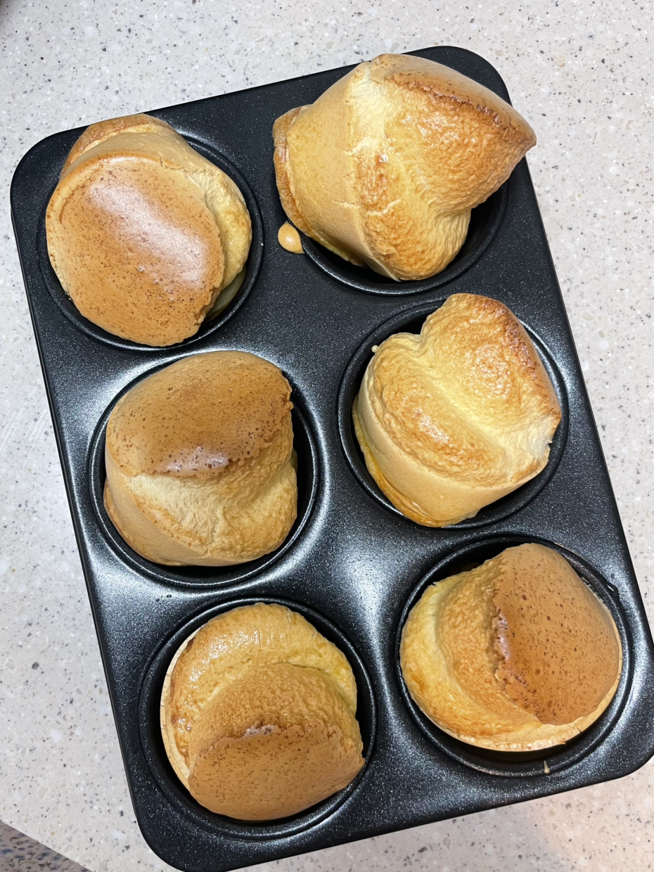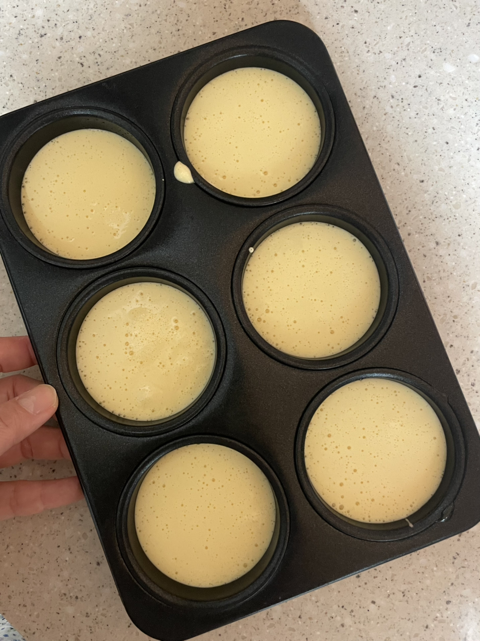 계란 다섯 개를 꺼내 흰자와 노른자를 분리해서 흰자는 거품을 내고, 설탕 세 스푼 넣고 다시 거품 내기를 두 번 반복, 밀가루가 없어 브라질 치즈빵을 만들 때 썼던 타피오카 전분을 다섯 스푼 넣고 섞기, 마지막으로 소금 톡톡 넣은 노른자를 넣고 가볍게 섞은 뒤 170도로 예열한 오븐에서 30분 굽기.