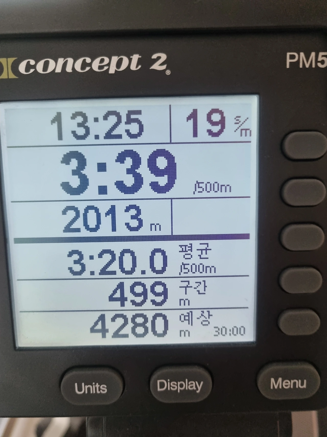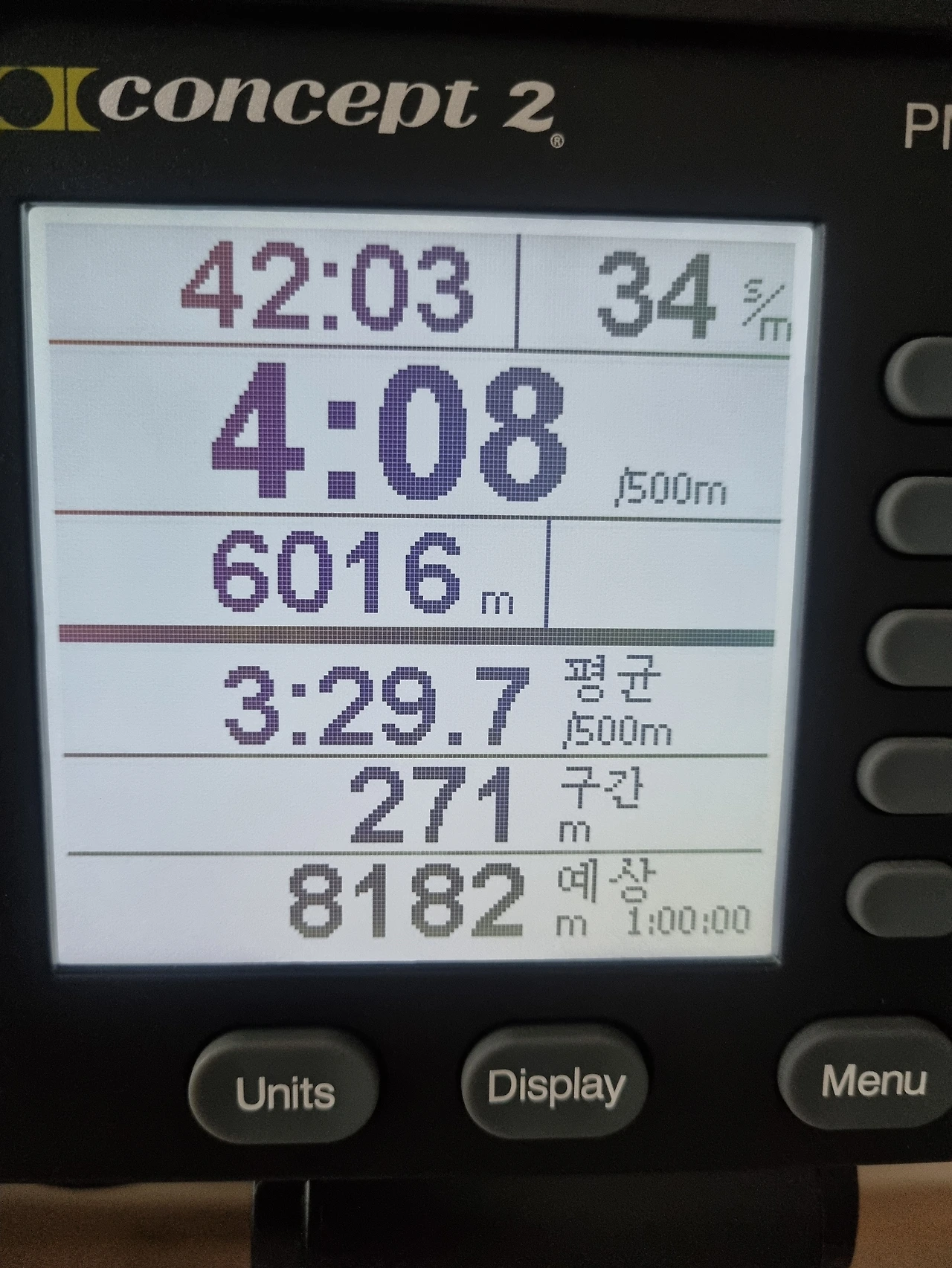 단백질셰이크 마시고 한숨 돌린 후 이번에는 로잉을 천천히 타서 처음으로 2000m 넘게 탔다.