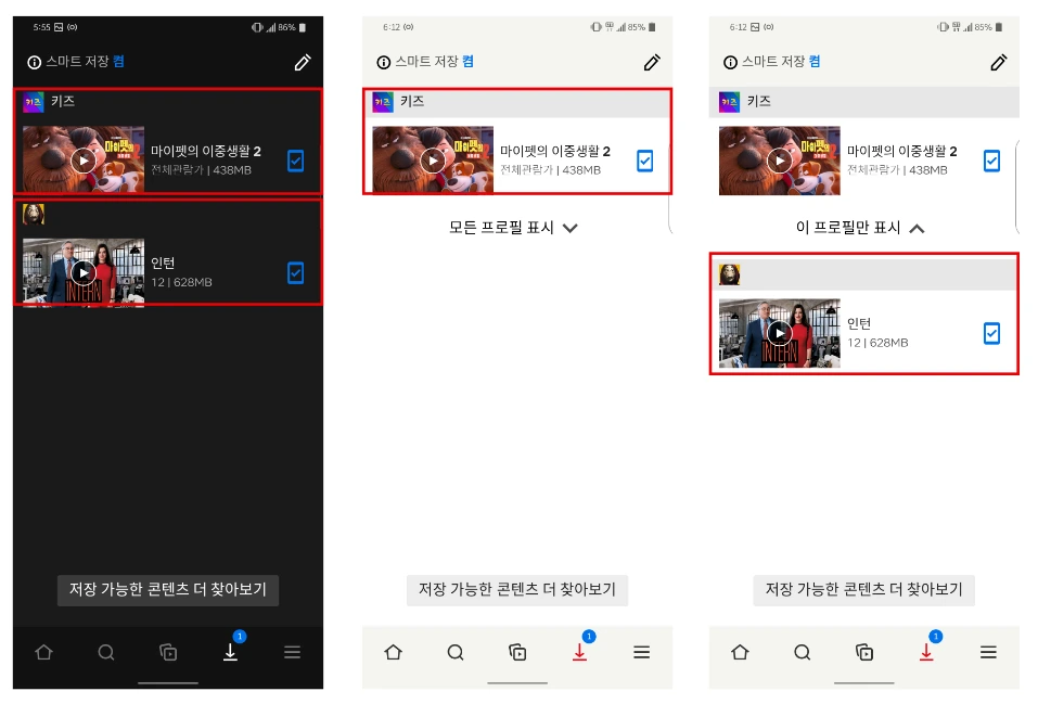 한 디바이스에 파일을 다운로드하면 동일한 경로에 파일이 저장되기 때문에 콘텐츠가 섞이게 된다. 1인 1 프로필을 사용하는 경우 문제는 없지만 어린 자녀가 있는 유저는 키즈용 프로필도 함께 사용하게 된다. 넷플릭스는 한 디바이스에 여러 프로필을 사용할 경우를 예상해 프로필별로 저장한 콘텐츠를 구분했다.