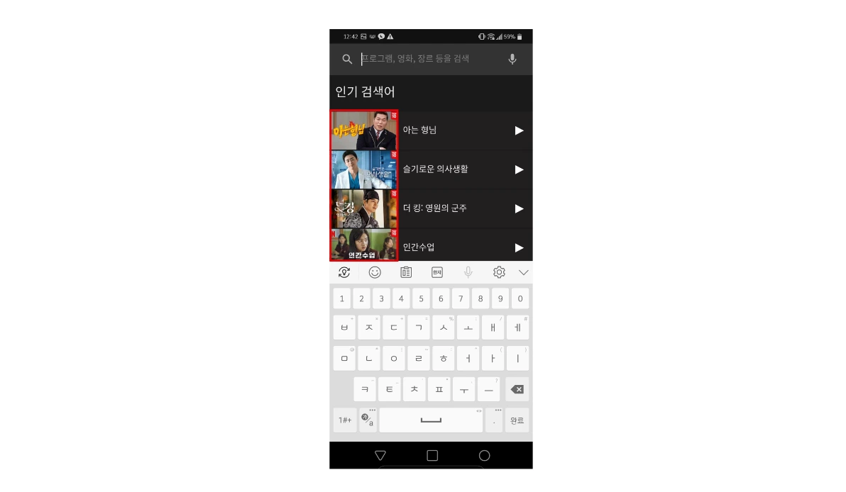 참고로 검색어 상위 콘텐츠일 경우 초성 검색도 가능하다. 가령 <슬기로운 의사생활> 드라마를 찾을 때 'ㅅㄱㄹㅇ'만 입력해도 가장 왼쪽 상단에 해당 콘텐츠가 노출된다.