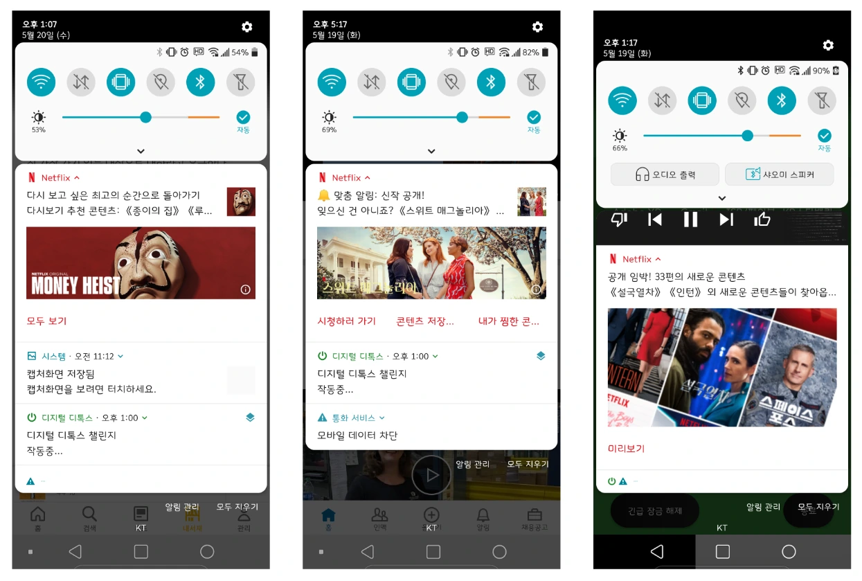 넷플릭스의 경우 신작 알림을 설정하면 신작 공개일 외에도 '다시 보기 추천 콘텐츠', '새로운 콘텐츠' 등 전체 알림도 주고 있다. 유저는 신작 알림을 기대하고 알림을 설정했기 때문에 원치 않는 알림을 받게 되면 짜증이 날 수 있다. 이런 불편을 줄이기 위해선 알림 허용 옵션을 신작 알림과 공지 알림으로 분리하는 것이 좋다.