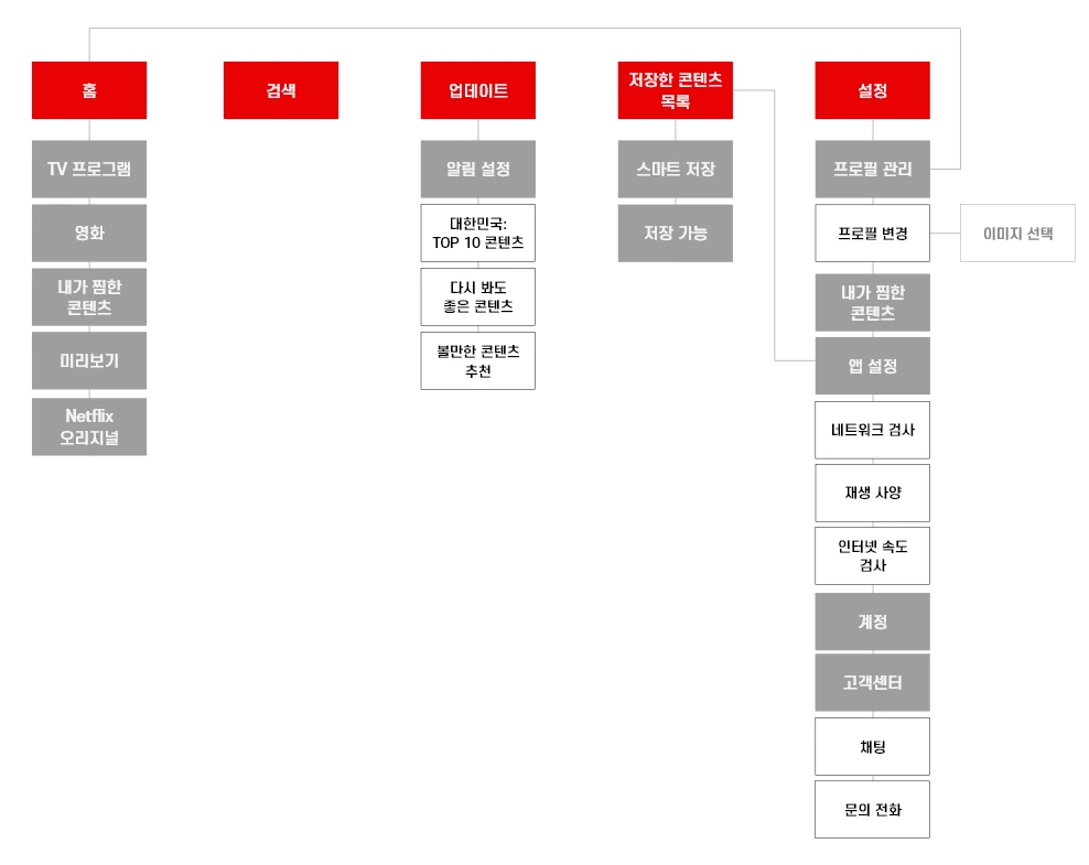 넷플릭스의 핵심활동은 콘텐츠를 찾고 보는 것으로 단순하다. 마치 쇼파에 앉아 리모컨의 전원버튼만 누르면 원하는 영상이 바로 보이는 것 같은 느낌이다. 신규유저의 경우 넷플릭스 오리지널을 보기 위해, 가족/친구 등이 권해서 등등의 이유로 넷플릭스를 찾는다. 따라서 기대하는 드라마나 영화가 있는지 검색을 하거나 혹은 넷플릭스가 추천해주는 콘텐츠를 보고 고른다.