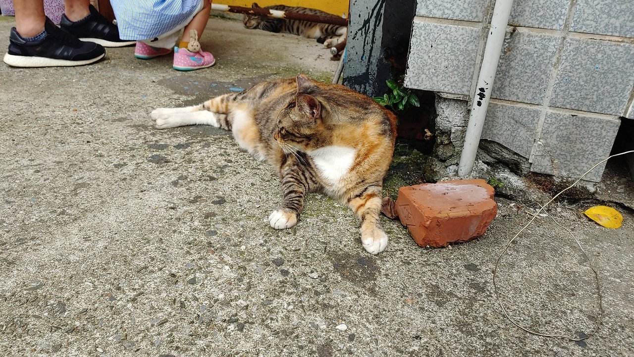 허우통 고양이 마을은 지명 그대로 고양이들이 많이 살고 있는 마을이다. 더운 여름에는 길가에 늘어져 자는 경우가 많고 때에 따라선 고양이를 많이 못 볼 수도 있다. 그점이 조금 걱정했지만 뻔하지 않는 관광지에 가고 싶은 생각에 핑시선 첫 여행지로 정했다. 허우통에서 내리고 나면 고양이 그림이 관광객들을 맞이하는 걸 볼 수 있다. 역사를 나서는 길에 누워 있는 고양이를 발견했고 오늘은 고양이를 많이 볼 수 있겠다 싶어 마음이 설렜다.