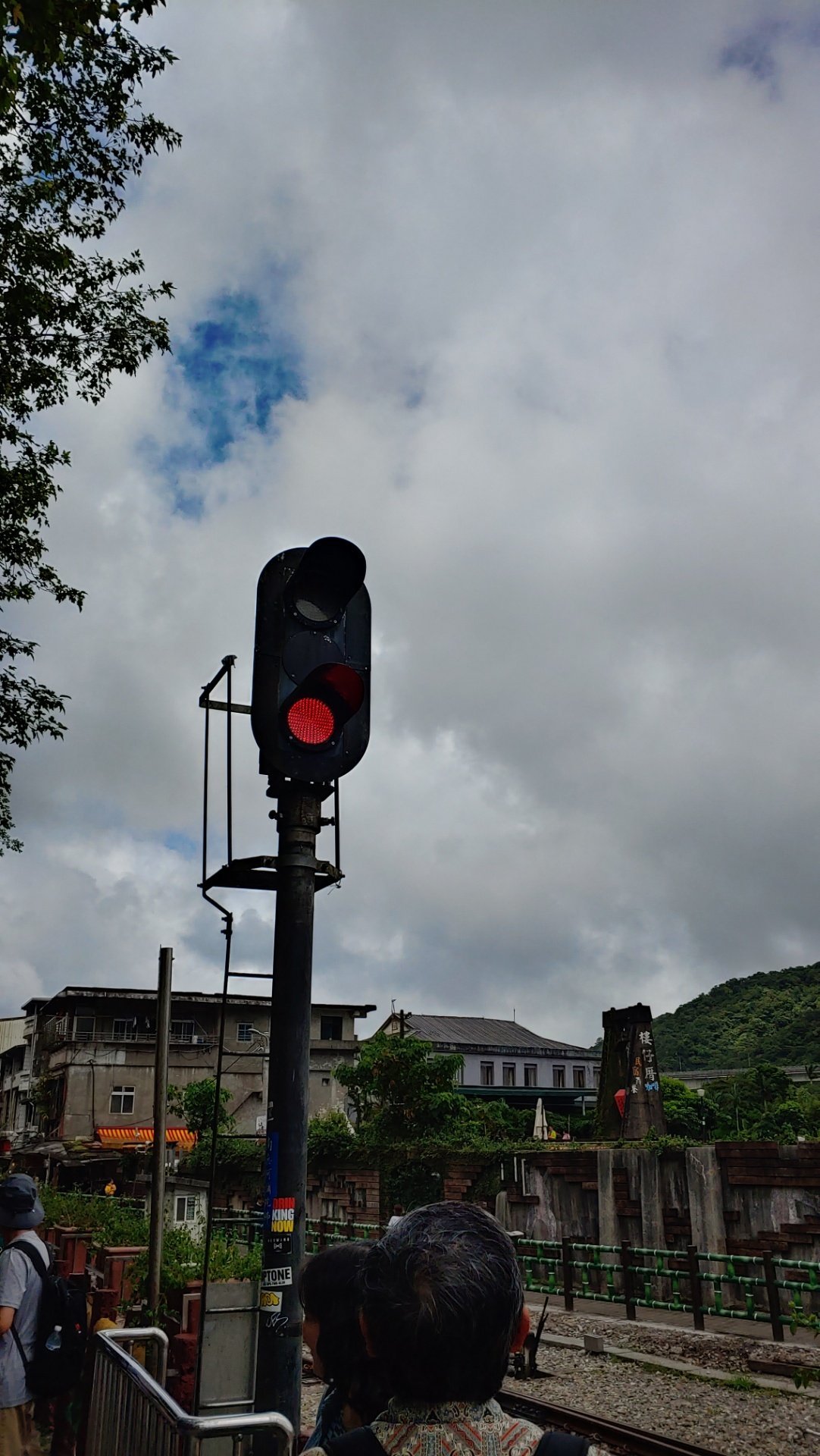 스펀의 특이한 점이라 하면 핑시선이 지나가는 철길에 자유롭게 오갈 수 있다는 것이다. 철길이 위험하기 때문에 핑시선이 올 때마다 경찰관이 호루라기를 불어 사람들이 대피하도록 했다. 나는 핑시선이 빠져나간 후 철길에 서서 풍등이 날아가는 하늘을 찍었다. 구름이 많이 낀 날씨라 잘 보이지 않아 아쉬웠다.