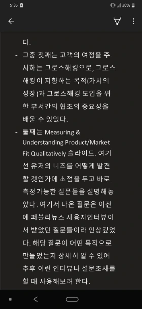 마지막으로 느낀점은 하루 일과에 대한 총평이라 볼 수 있다. 업무 외에도 직장생활을 하면서 겪는 어려움 혹은 좋았던 경험을 떠올려보고 그에 대해 느낀 점을 쓴다. 여기서 쓴 글이 발전해서 브런치 글에도 쓰기도 한다. (주니어 기획자가 느끼는 고민들도 회고 노트에서 나왔다.)