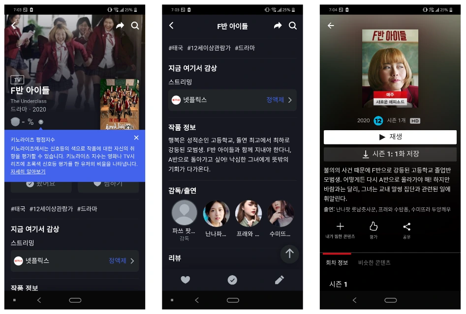 작품 정보를 살펴보고 리뷰를 확인한 후 구독하는 OTT 서비스로 이동하는 과정은 매끄럽게 이어졌다. 이미 앱이 설치되어 있으면 작품 상세 페이지로 이동하고, 설치되지 않거나 웹 기반인 경우 웹뷰로 보여준다.