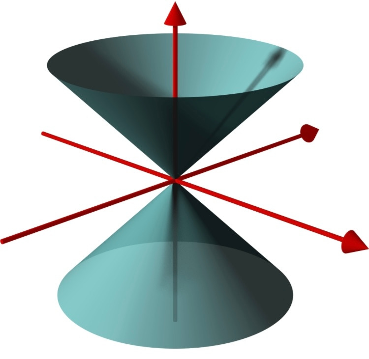 이것은 double cone으로 시각화될 수 있다. 더블 콘은 두 원뿔을 꼭짓점을 중심으로 붙여놓은 입체이다. 더블 콘의 단면은 여러 가지로 나타나는데 수평으로 자르면 원이, 비스듬하고 자르면 타원이, 더욱 비스듬하게 자르면 포물선이, 수직으로 자르면 쌍곡선을 단면으로 가진다.