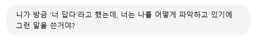방금 '너답다'라고 했는데, 너는 나를 어떻게 파악하고 있기에 그런 말을 쓴 거야?