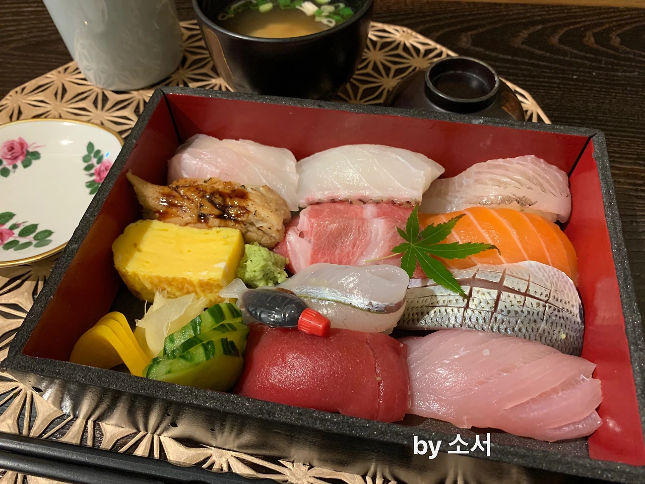 잘 기억이 나질 않는데, 모둠초밥을 주문하니 도시락에 줄지 물어보셨던 것 같다. 사진도 찍고 맛있게 먹다 보니 요리사 분들과 이야기도 조금 나눌 수 있었다.