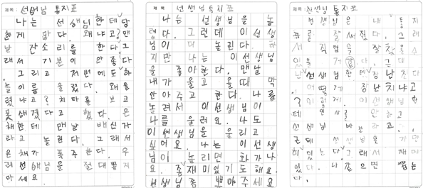 "나는 선생님한테 당한 게 많다. 왜냐고? 맨날 잔소리를 한다... 중략... 은채한테 맨날 배신자라고 놀린다. 그래서 은채가 폭주한다. 우리 선생님을 절대 뽑지 마세요.