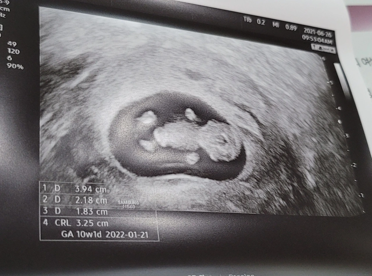 "임신했어, 이제 안정기라 말하는 거야. 조그만 게 사람이래"