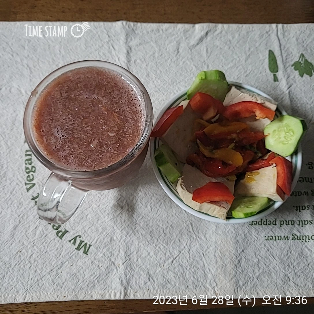 와중에 마지막 양심은 있었는지 '마이 퍼펙트 비건 레시피'란 문구가 쓰여있는 비장한 식탁보는 점심 식탁에는 깔지 않았다. 깔고 먹은 아침에는 보다시피 육것을 올리지 못했다.실은 공모자임을 자백하는 결국 사뭇 윤리적인 일기 끝.
