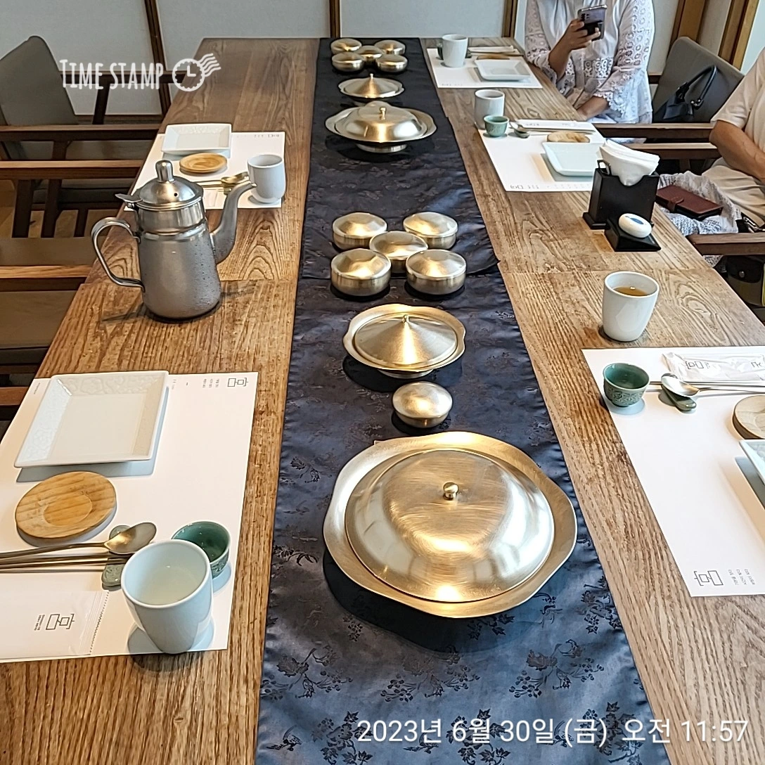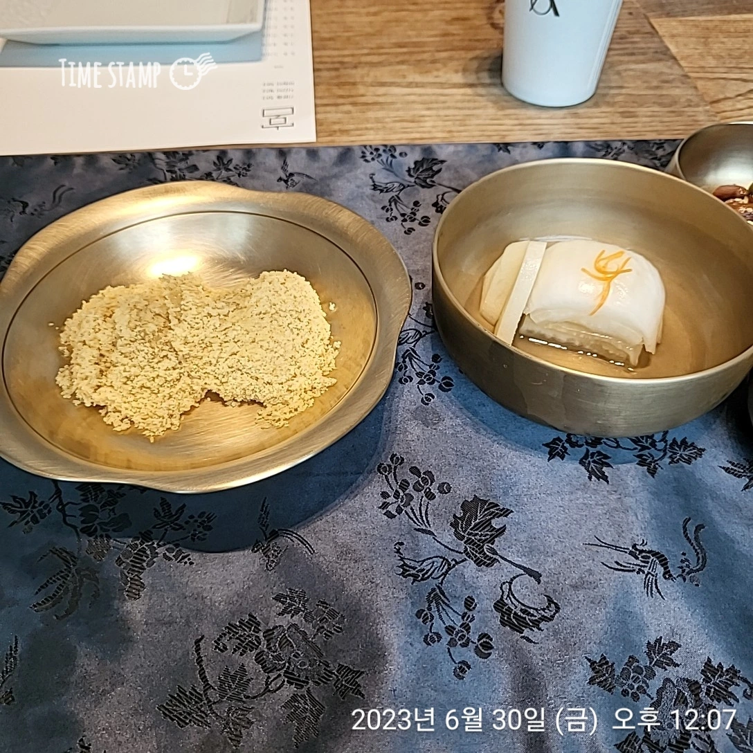 인연이 귀하니 음식도 귀하다. 첫 음식은 두텁떡. 이게 고물 속에 묻혀 있다 보니 얼마나 지극정성을 들이는지 사람들이 모른다며 설명을 곁들이셨다. 앞부분은 놓쳤고 마지막 말씀만 기억난다. 좌우간 가정에서는 만들 엄두를 내기 어려운 음식이란다. 요즘 이상하게 아재개그 본능이 아무데서나 작동한다. '감사하게 그 엄두를 다 내셨다'고 말씀을 받아드렸는데, 어쩔 줄 모르고 나가신다.