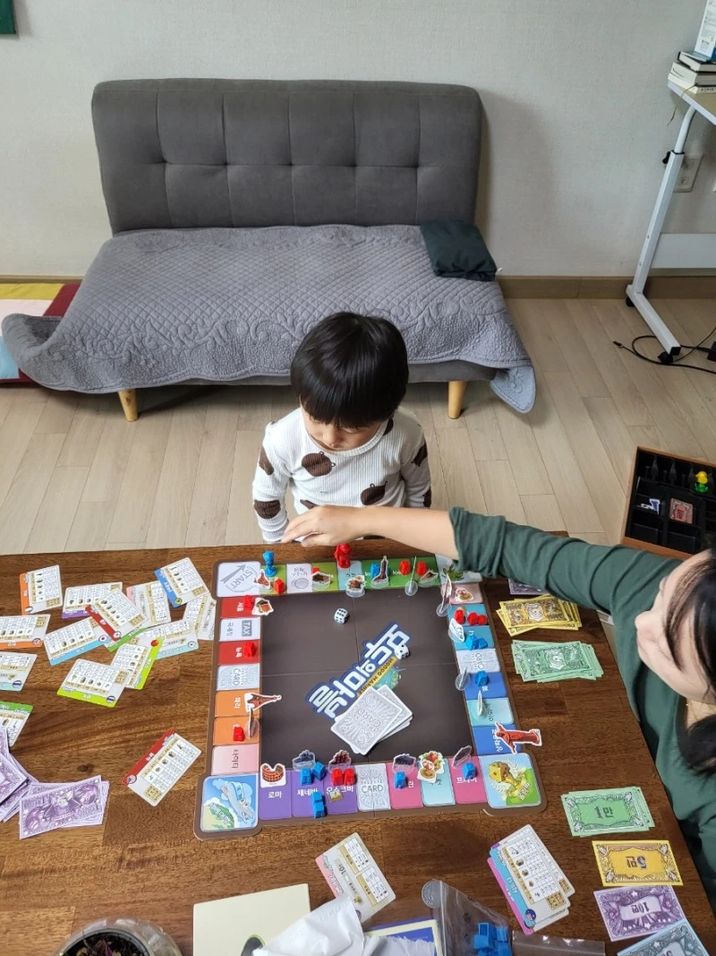 혁이의 방학이다. 점심을 먹으러 집에 와보니 아내가 드디어 비장의 무기를 꺼내든 모양이다. 모두의 마블.