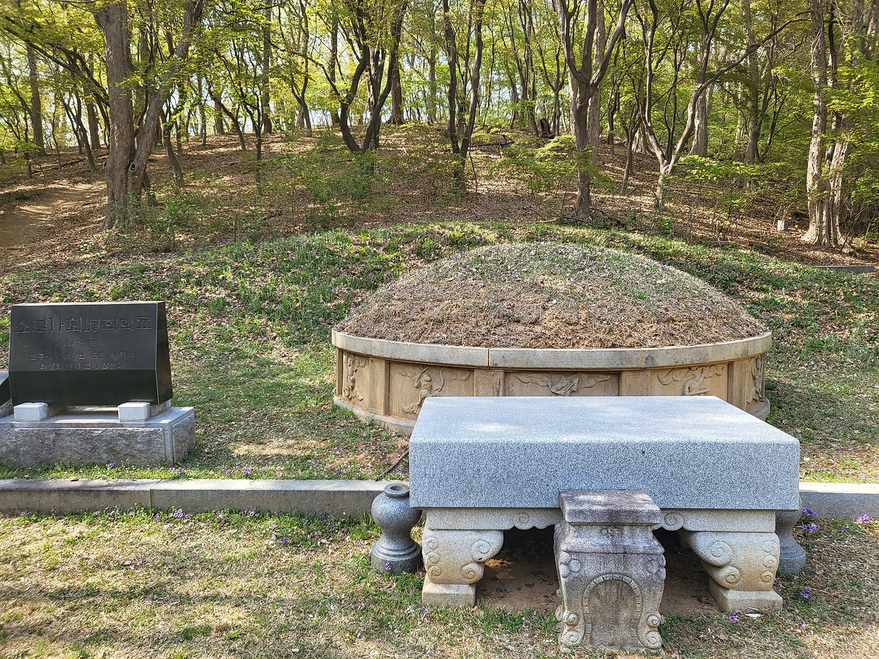 혼불문학공원. 혼불을 쓰신 최명희 선생님의 묘가 있는 곳이다. 제임스 조이스에게는 더블린이 있었듯, 최명희 선생의 작품세계는 전주다. 문인에게 예술혼과 영감을 불어넣을 수 있는 도시란 얼마나 값진가. 인근의 벚꽃을 보러 향한 곳이었지만, 자연스레 공원을 품고 있는 야트막한 건지산을 뱅뱅 도는 산행이 되었다.