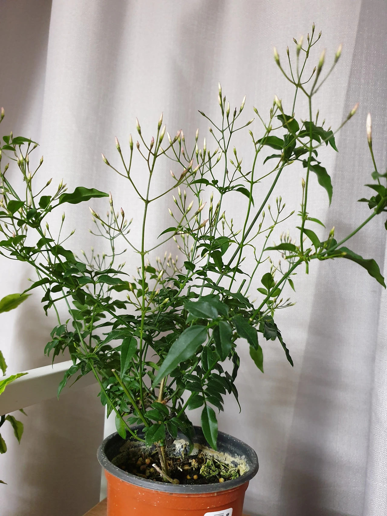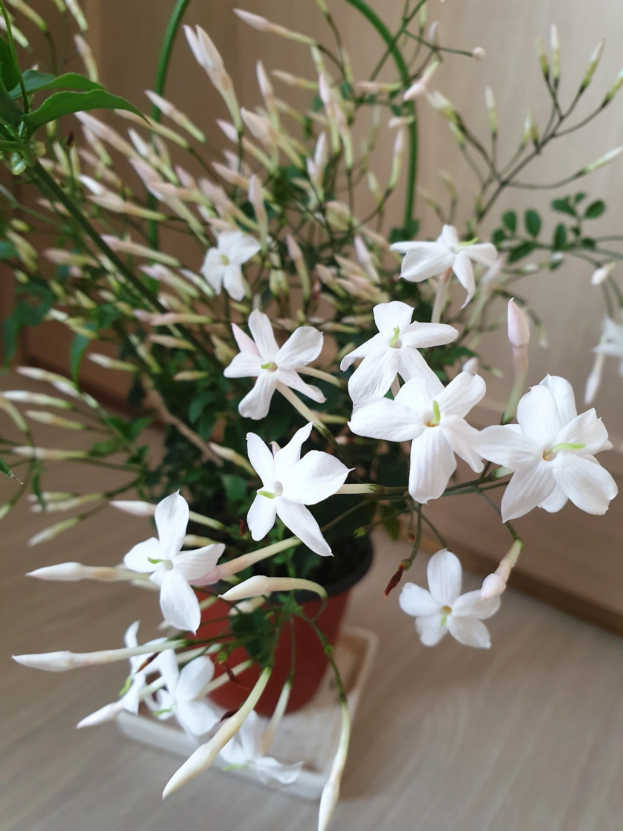 일주일이 지났다. 아침부터 거실에서 이상한 탄내 비슷한 냄새가 난다. 남편이 계란프라이를 태웠나 주방으로 가본다. 그러나 태운 음식은 없다. 이상함을 감지하고 화분들을 하나씩 살펴본다. 한쪽 구석에 있던 학자스민이 꽃을 피웠다. 그런데 냄새가 독하다. 내가 생각했던 향긋한 냄새가 아닌 엄청 진한 향인데 뭔가 나랑 맞지 않는 향이다. 이런 꽃향기는 처음이다.