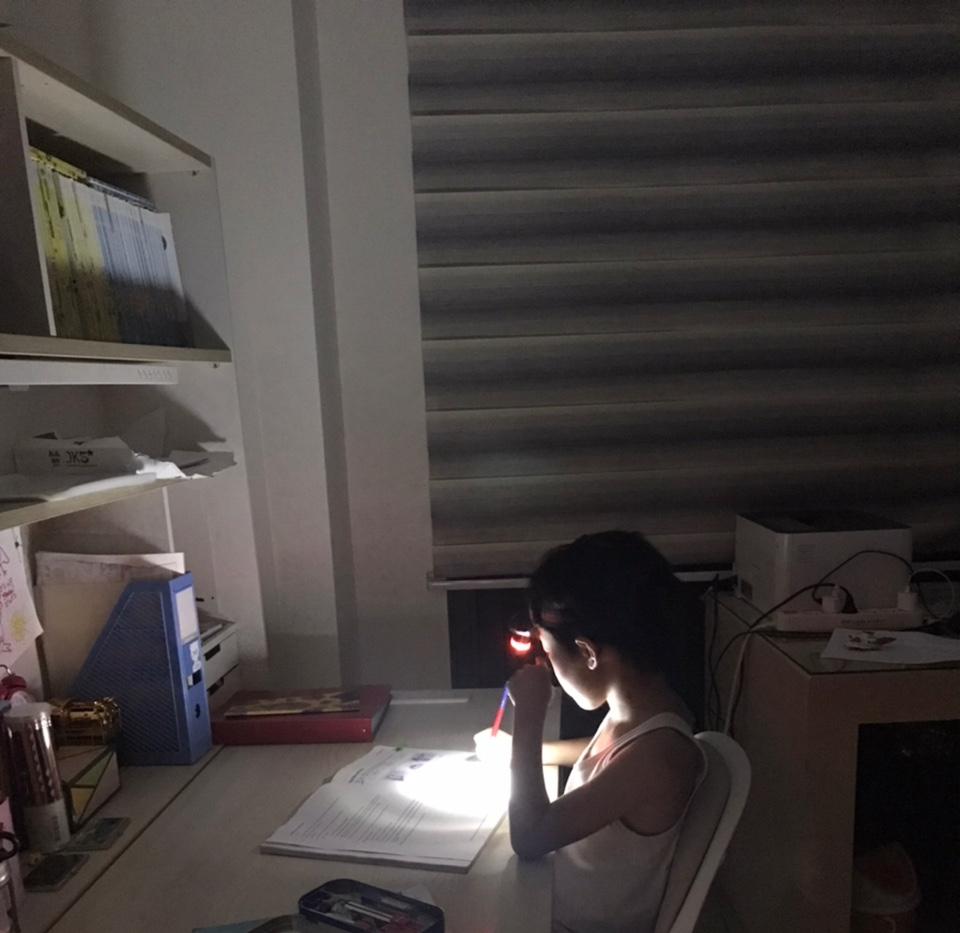 큰 아이가 집을 뒤져 헤드랜턴을 찾아냈다. 나는 이걸 쓰고 설거지를 했다. 어둠 속 설거지통만이 환히 빛났다. 네가 스포트라이트를 받는 오늘의 주인공? 괜히 웃음이 났다. 일을 마치고 아들이 랜턴을 넘겨받아 숙제를 했다. 여기에 초 하나를 더한 빛에 의지해 아이들 몸을 씻겨주었다. 아이들은 퍽 재미있어하는 눈치다. 다행히 물이 끊기기 전에 샤워를 마쳤다.