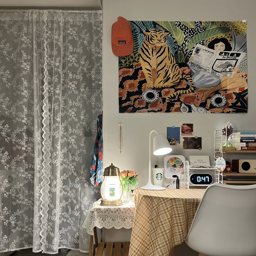 필요한 것과 불필요한 것들의 경계도 없이 그냥 이쁘면 주워 담고 구매했던 미련한 소비시절을 지나, 지금은 나름 나만의 철칙을 만들어 이유 있고 쓸모 있는 것들 위주로 사는 습관을 기르게 되었다. 하지만 여전히 남들에게는 예쁜 쓰레기들로 보일지도 모르겠다. 그래도 난 이 공간을 좋아한다. 떠오르는 영감과 감성을 발현시켜 줄 작업실을 가진 기분이기 때문이다.