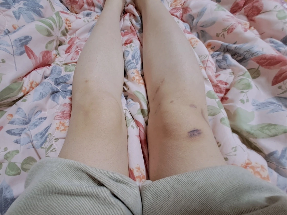 3. 그러더니 오늘은 무릎에 멍이 났다. 아니지, 오늘 발견한 것이니 실제 언제 멍이 났는지도 모른다. 아마 며칠 전 어딘가에 부딪혀서 타박상을 입었을 것이다.