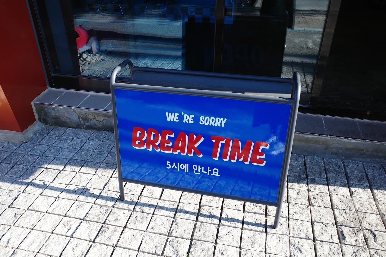 왕복 30분이 넘는 시간을 허비하고 차로 돌아왔더니 배가 고팠다. 후보에 있었던 근처의 까페들도 모두 수요일 휴무였다. 강릉은 아무래도 여행지라 그런지 화, 수 휴무인 가게가 많았다. 헛짓거리하느라 에너지 소모가 많았고, 예쁜 까페를 가긴 글렀으니 맛있는 거라도 먹자는 생각으로 다시 지도에 찍어둔 별(즐겨찾기)을 확인했다. 마침 10분 거리에 수플레 팬케이크 버거를 파는 식당이 있었다. 같은 실수를 반복할 수 없어 영업일과 영업시간을 확인했다. 다행히 수요일은 오픈하는 날이었는데 점심 라스트 오더가 2시 30분까지였다. 현재 시각 2시 15분. 일단 출발하자!!!